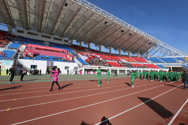 在雄壮的《运动员进行曲》中,国旗队、校旗队、彩旗队、花束队、标语队、裁判员代表队以及各系方阵队伍依次入场,他们器宇轩昂,精神抖擞,迈着整齐有力的步伐,以飒爽的英姿接受主席台领导的检阅,洪亮的口号声此起彼伏,充分展现了呼职人朝气蓬勃、奋发向上的精神风貌。