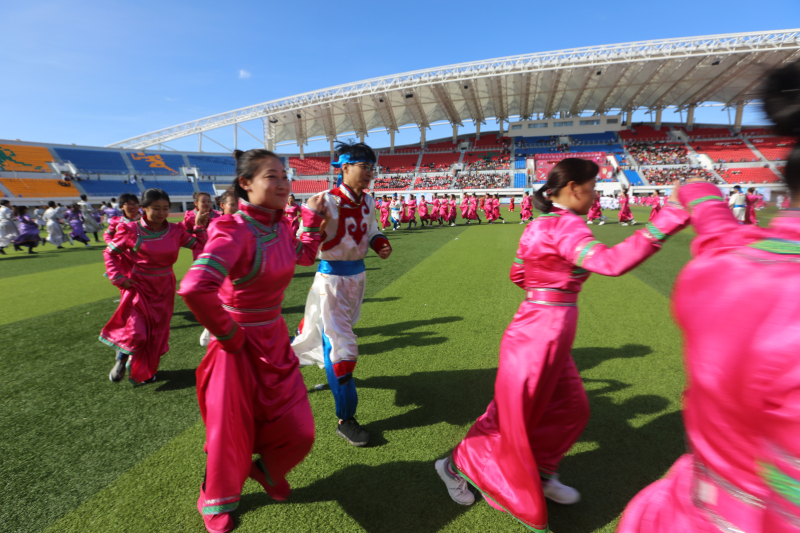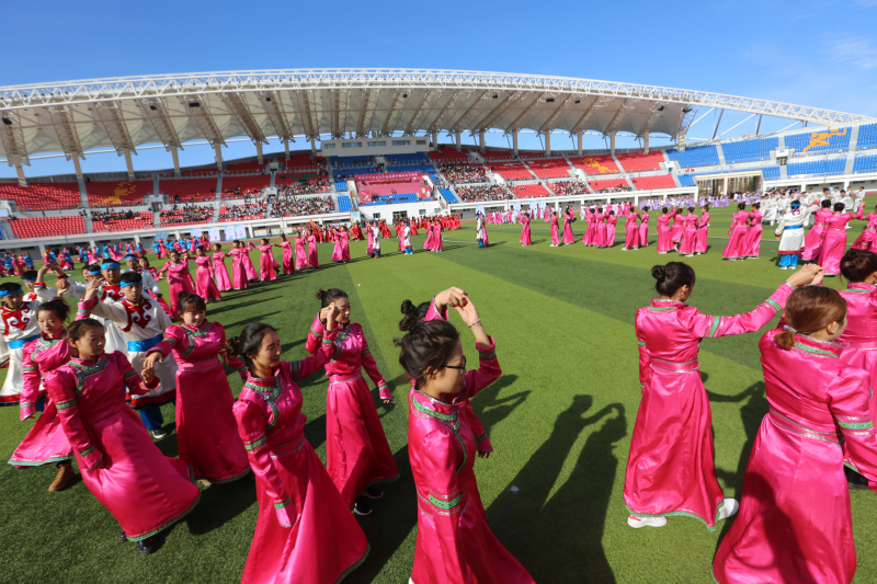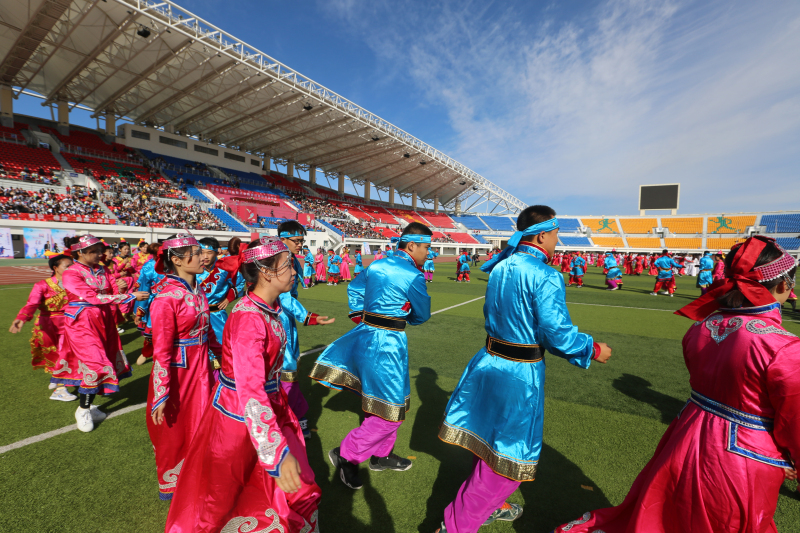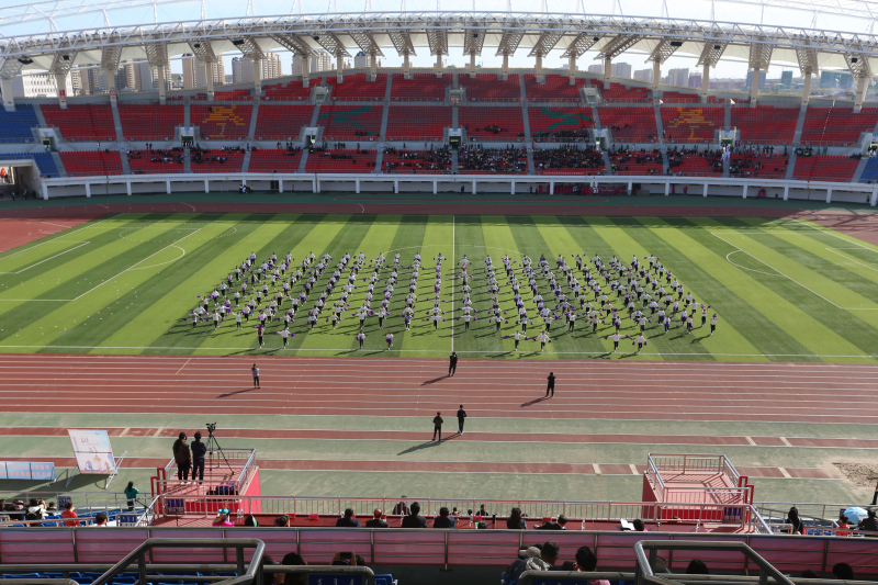 由学院九个系共同带来的民族民间广场舞表演,淋漓尽致地将生活在呼伦贝尔大草原上能歌善舞的少数民族特色演绎出来,欢快的旋律使整个体育场内呈现一派喜悦祥和的景象。