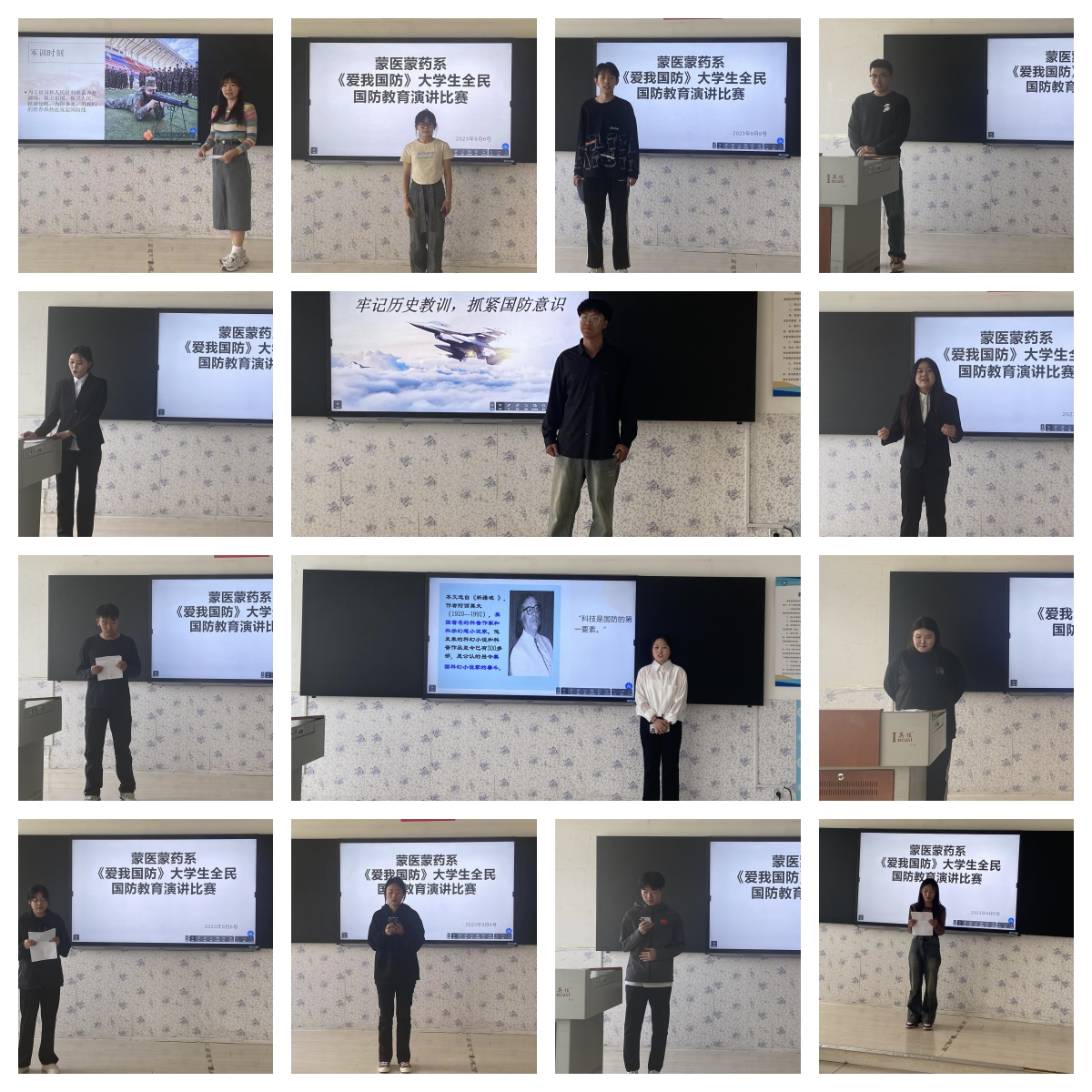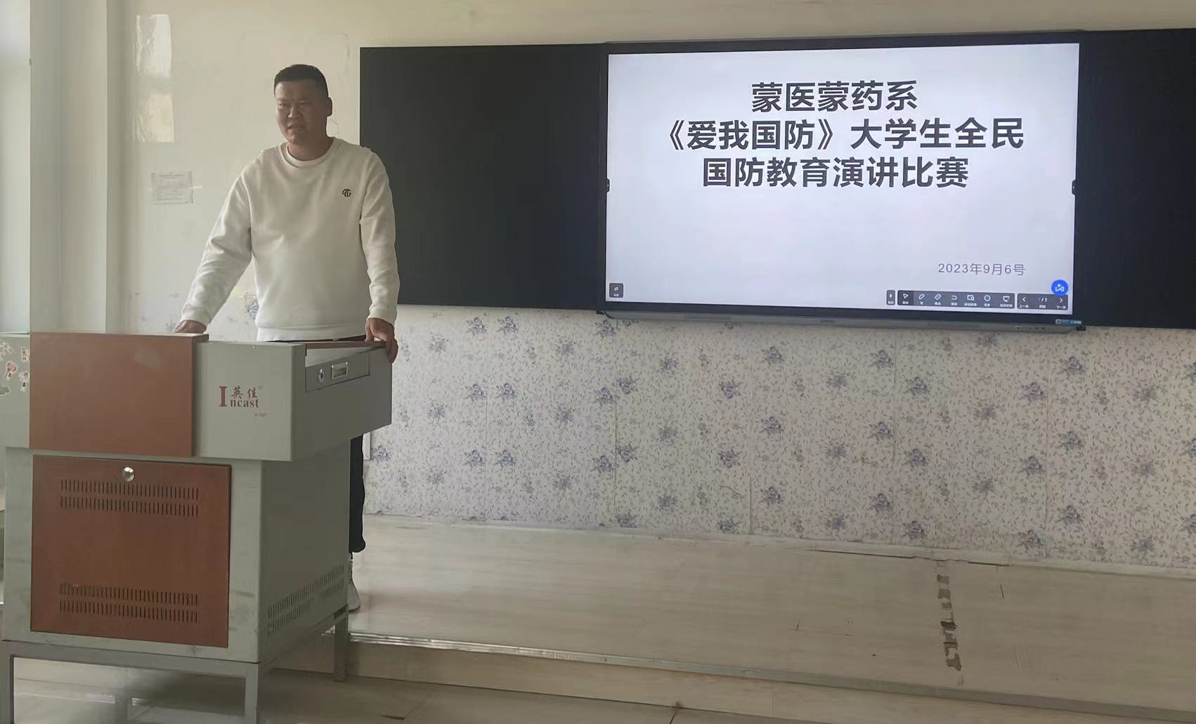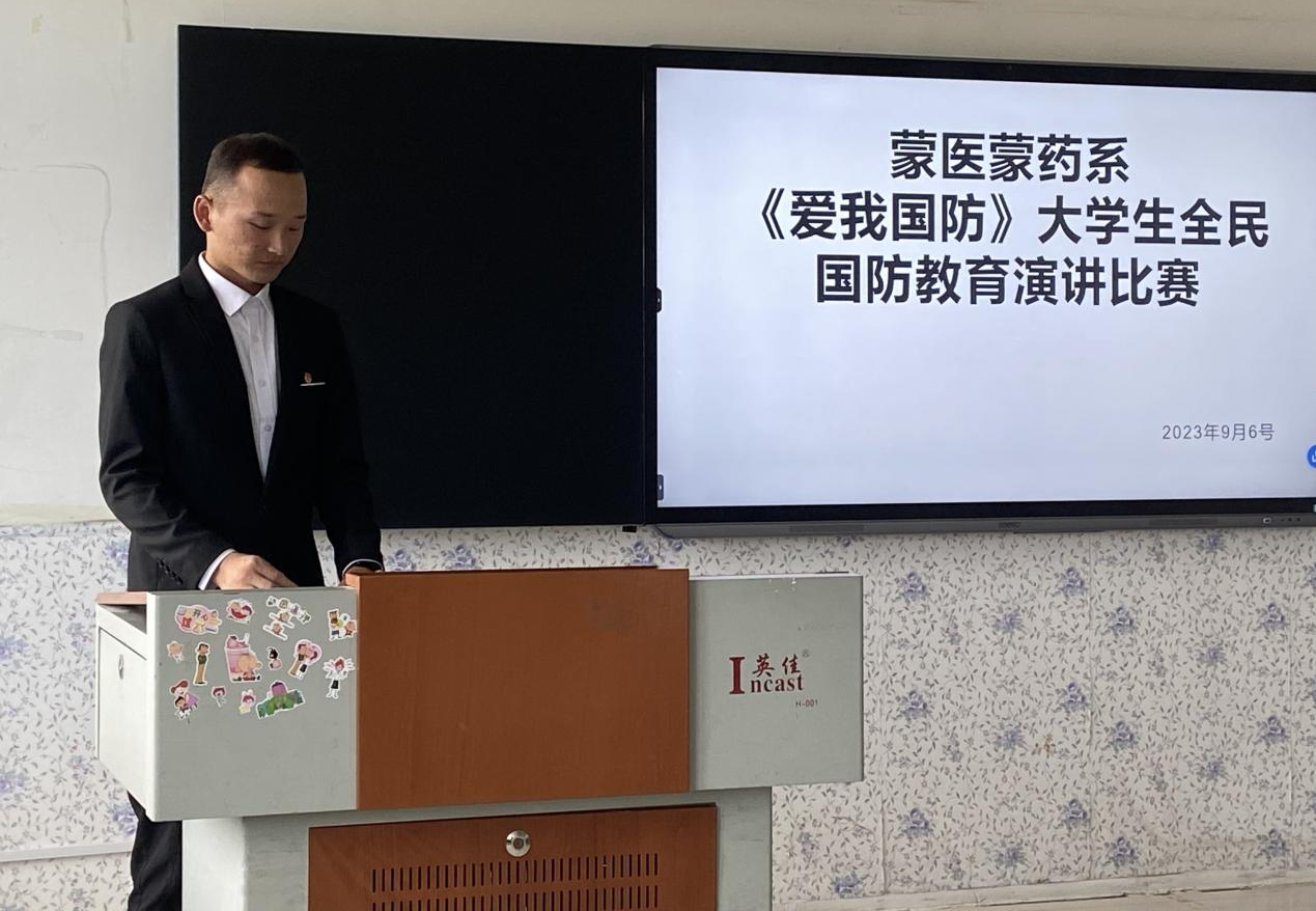 为全面贯彻党的二十大精神,深入贯彻习近平强军思想,认真学习领会习近平总书记关于加强全民国防教育的重要论述,不断增强大学生国防观念、国防素养和爱军尚武意识,为实现中国梦强军梦凝聚强大力量。9月6日,蒙医蒙药系于求真楼403教室举办“爱我国防”大学生全民国防教育演讲比赛初赛。本次比赛评审团由蒙医蒙药系团学办副主任阿希塔,一线专职辅导员李秀宇、白庆坤组成。