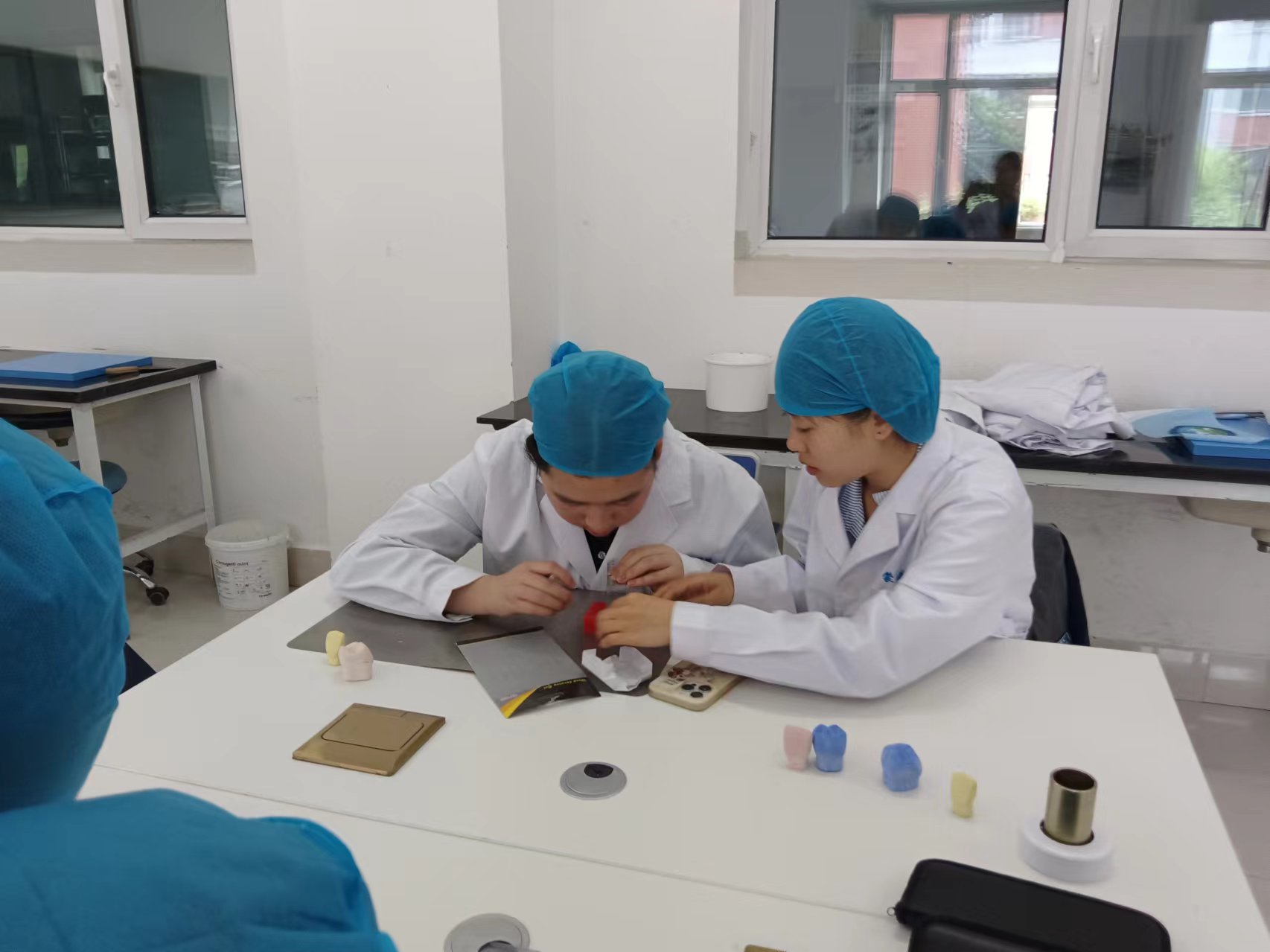 在蒙医传统疗术的学习环节中,研学学生们对治灸疗技术产生了浓厚兴趣。蒙医传统疗术中的灸疗,即针对不同部位的疾病,分为间接灸疗和直接灸疗两种形式。在蒙医教研室包诺敏老师的悉心指导下,学生们学习了如何根据疾病的特点选择合适的灸疗方法,并亲身体验了号脉、按摩、针灸等技能。通过实践,学生们不仅了解了蒙医传统疗术的基本操作,更深刻感受到了蒙医文化的博大精深。随后,研学学生们进行牙体雕刻技术的学习。在口腔教研室张心怡老师的讲解下,学生们首先了解了口腔医学技术的专业概念,其次学习牙体形态的相关知识,最后详细讲解了利用蜡块雕刻牙体形态的操作步骤。在教师和专业学生的示范和指导下,学生们亲自动手操作,用蜡块雕刻出了牙体形态。通过这一环节的学习,学生们不仅掌握了牙体雕刻技术的基本技能,也对口腔卫生知识及口腔健康的重要性有了深入了解,有利于提高自身口腔保健意识。