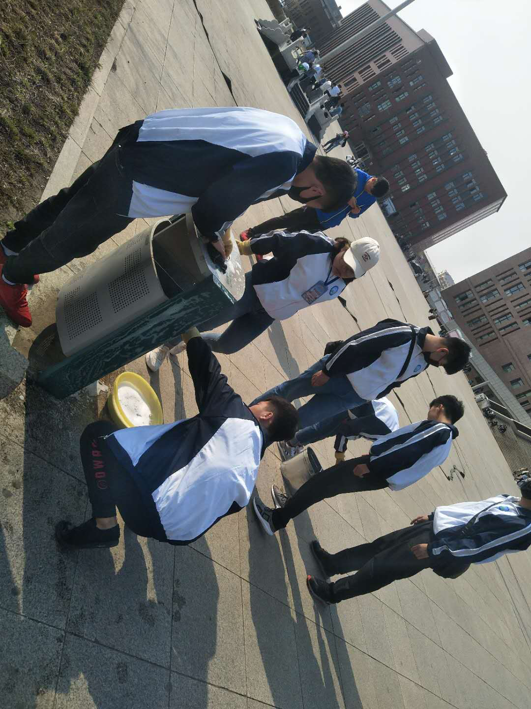 活动过程中,每名同学都积极主动,认真负责,虽然天气炎热,垃圾箱味道令人不适,但没有人发出半点怨言。他们清空垃圾箱,清洗擦拭箱外面厚厚的灰土,用钢丝球将黑乎乎的烟灰缸清理干净……使垃圾箱一尘不染、物见本色。