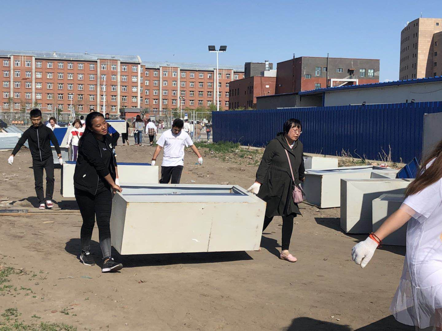 学生们本着为人民服务,为校园大家庭服务的宗旨,以饱满的热情,充沛的精力积极响应本次活动,此次活动的主要任务是搬运清除一食堂后面堆积如山的废弃柜子。活动中学生干部们起到了模范带头作用,带领同学们从一食堂后面搬运废弃柜子到实训楼旁的指定地点,与此期间老师们也加入到了同学们志愿服务的队伍当中,与学生们共同搬运废弃柜子,经过2个多小时的紧张劳动,大半废弃柜子被老师和同学们搬离到指定地点。