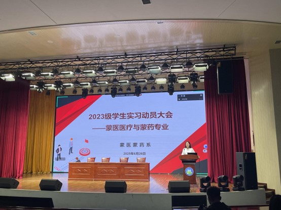 为切实做好实习工作部署,全方位强化学生安全意识与职业素养。6月17日,蒙医蒙药系召开2023级学生实习动员大会暨实习安全培训。 系主任金双龙、教科研办主任菊梅、副主任孙月茹2023级实习班主任及全体学生现场参会,学生家长线上参会,共启实践成长新征程。