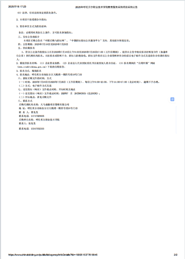 2025年呼伦贝尔职业技术学院教育服务采购项目采购公告