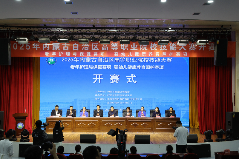 在全场热烈的掌声中,呼伦贝尔职业技术学院党委书记李广林宣布大赛开幕,2025年内蒙古自治区高职院校技能大赛老年护理与保健赛项、婴幼儿健康养育照护赛项正式启动。