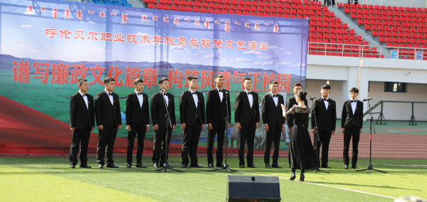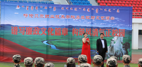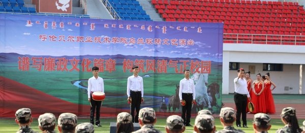 为不断丰富入学教育的内容和形式,进一步加强对学生的廉政文化教育,呼伦贝尔职业技术学院将廉政文化教育纳入2018级新生入学教育中,于9月10日下午,在学院体育场举办了以“谱写廉政文化篇章 构筑风清气正校园”为主题的廉政文化“乌兰牧骑”文艺演出。自治区党委宣传部高校企业思想政治工作处处长孙国铭、市委宣传部副部长张辉天,与学院党政领导、各党总支(直属支部)书记、学管工作人员以及2018级全体新生共同观看了文艺演出。