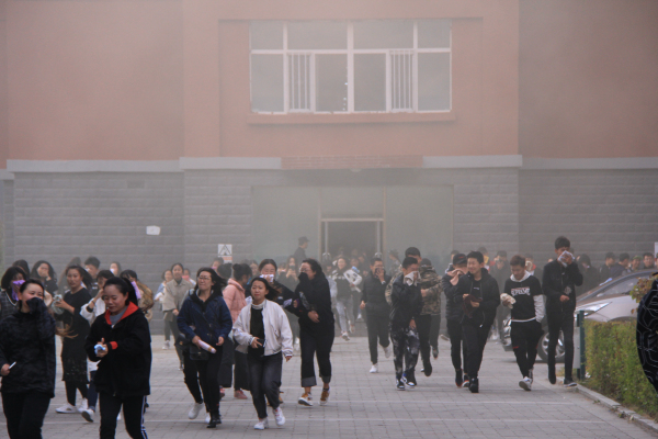 下午16时30分,学生公寓涌出滚滚浓烟,随即警报声响起,火灾逃生演练拉开序幕,同学们在老师的组织下,用湿毛巾捂住口鼻快速有序地从各公寓楼向主楼前广场疏散,到达后老师立即清点人数,确保每位学生安全疏散到位。
